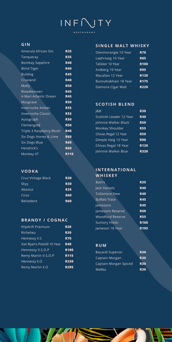 Infinity Restaurant Menu